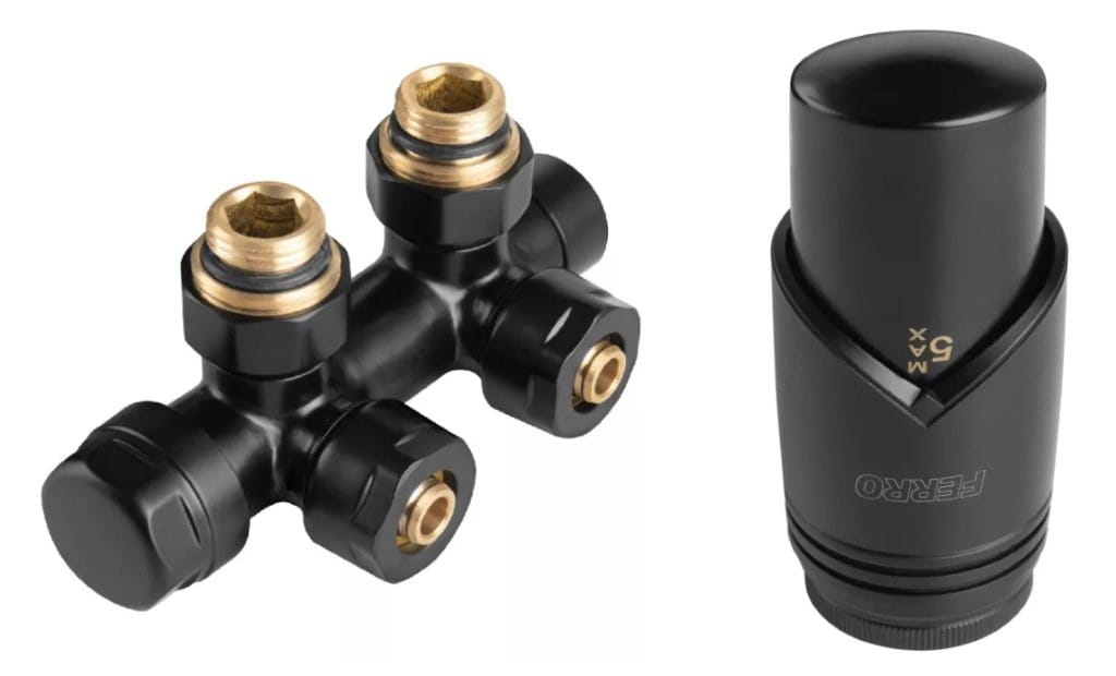 FERRO Zestaw termostatyczny kątowy ZTD30BL CZARNY grzejnik łazienkowy