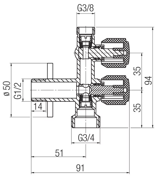 VAL ZAWÓR KOMBINOWANY DUO 1/2X3/8X3/4